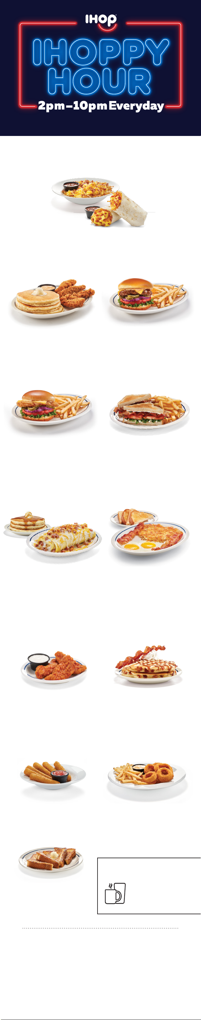 IHOP cannot ensure items do not contain ingredients that might cause an allergic reaction or impact other dietary restrictions.